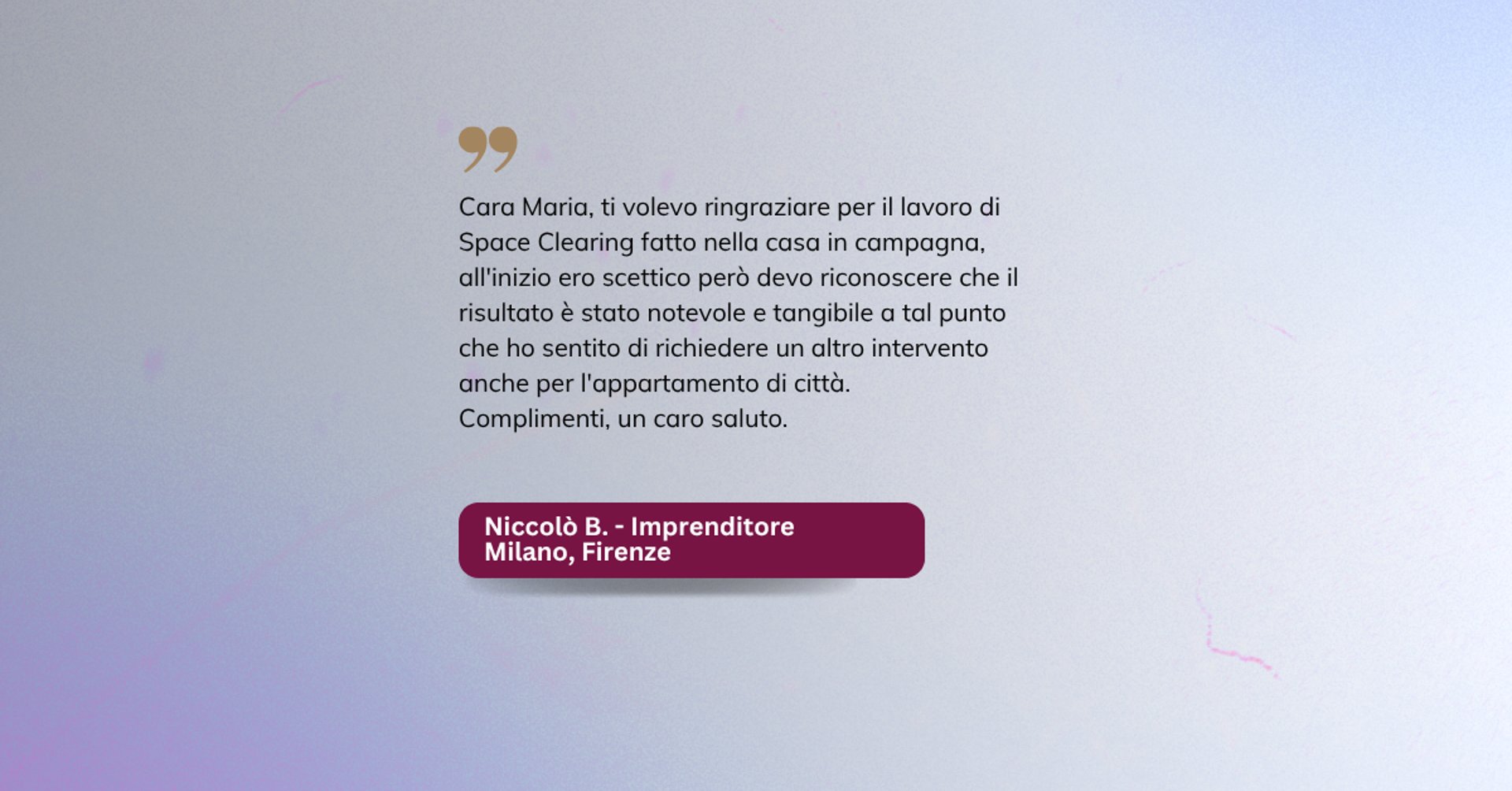 ripulisco energeticamente gli immobili e aiuto così le persone a vivere e lavorare in Spazi Energetici, luoghi dove riuscire finalmente a rigenerarsi e ritrovare serenità